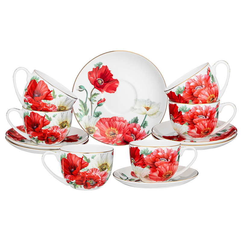 Чайный набор "МАКИ" на 6 пер. 12 пр. 330 мл (кор=6наб.) LEFARD 104-922