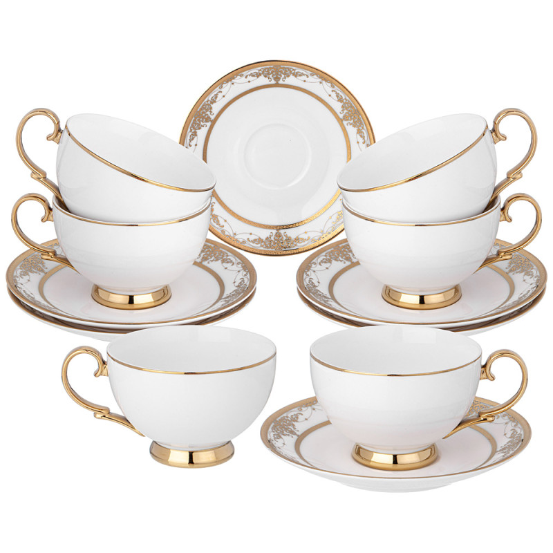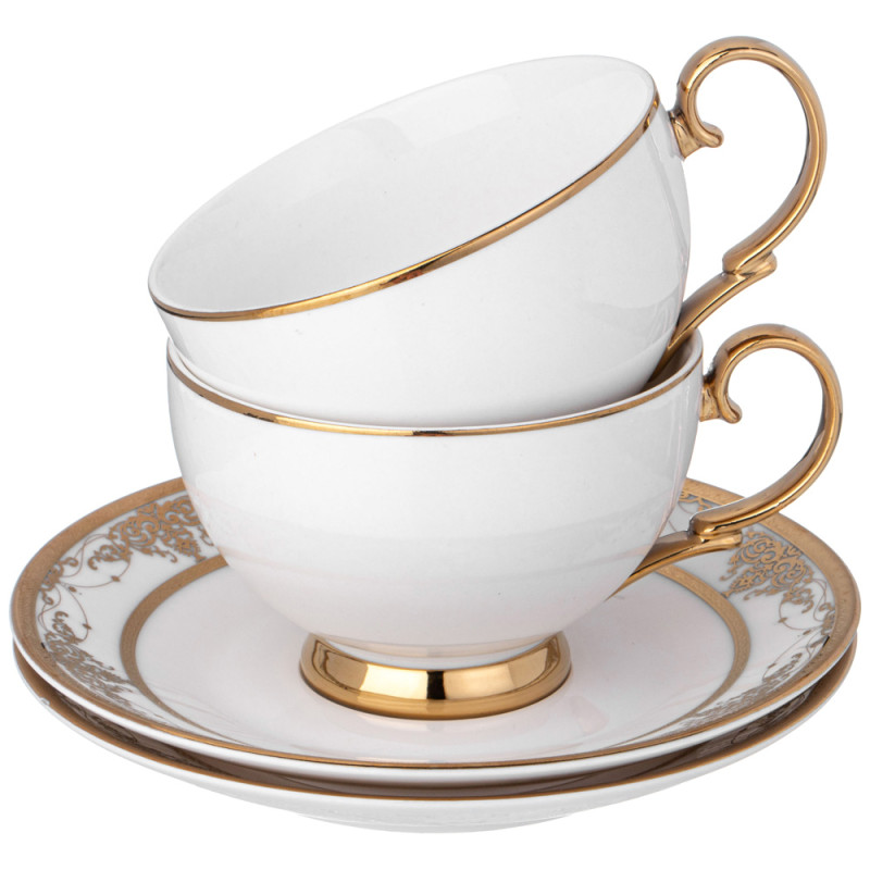 ТМ LEFARD Чайный набор "Дворец" для торжественых застолий и семейных обедов. Изысканный фарфор Bone Pocelain с эффектом костяного фафора, тонкий и полупрозрачный, прочный и никогда не темнеет. Утонченный кружевной рельефный орнамент выглядит объемным и привлекательным благодаря различной обработке выпуклых и базовых поверхностей. Изящная золотая обводка придает блеск и торжественность. Эта посуда замечательный подарок на свадьбу, юбилей, день рождения, который наверняка пригодится каждой семье, запомнится навсегда и прослужит долгие годы. Дизайнеры торговой марки предлагают чайный и обеденный сервизы и наборы тарелок и чайных пар, чтобы сформировать полную сервировку стола предметами коллекции на 6 или 12 персон.