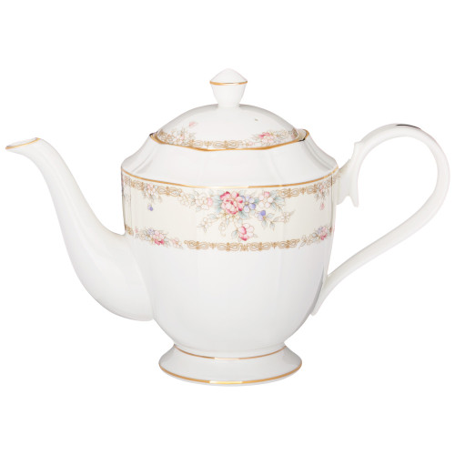 Коллекция «Цветочная аллея» ТМ Lefard сочетает в себе изящество и функциональность. Непревзойденная классика с нежным цветочным декором, отделка золотом, изящная форма и тонкий магнезийный фарфор придают изделиям коллекции неповторимое ощущение легкости и воздушности. Все краски для декора и глазурь соответствуют международным стандартам качества. Не рекомендуется мыть в посудомоечной машине, запрещено использовать в микроволновой печи. Комплектность: чайник 900 мл 1 шт., сахарница 300 мл 1 шт., молочник 250 мл 1 шт., чашка 250 мл 6 шт., блюдце 16 см 6 шт.
