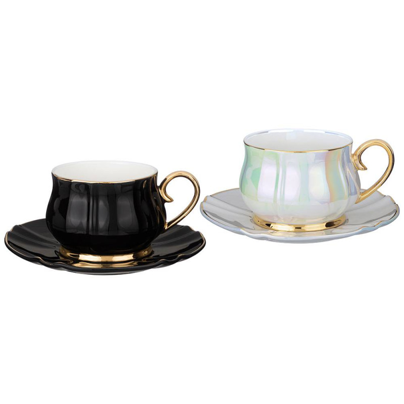 Чайный набор "PEARL" на 2 пер. 4 пр. 200 мл черный, белый (кор=12наб.) LEFARD 275-1176