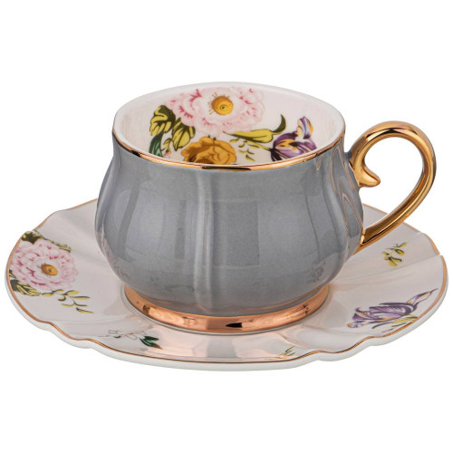 Чайный набор "ВРЕМЕНА ГОДА" на 2 пер. 4 пр. 200 мл серый и розовый (кор=12наб.) LEFARD 275-1177