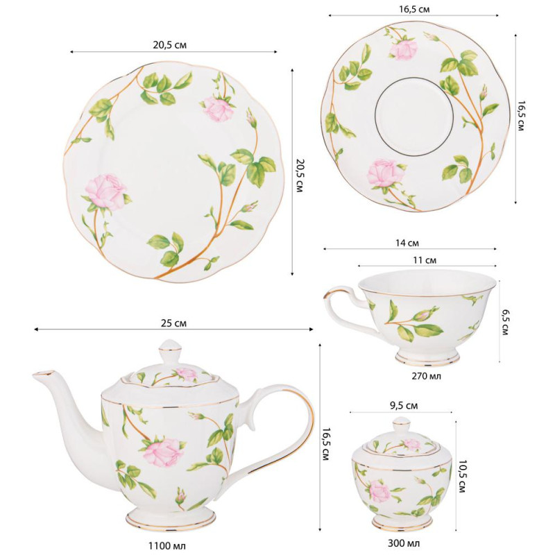 Чайный сервиз "ROSE VALLEY" на 6 пер. 20 пр. 1100/300/270 мл/20,5 см (кор=2наб.) LEFARD 275-1254