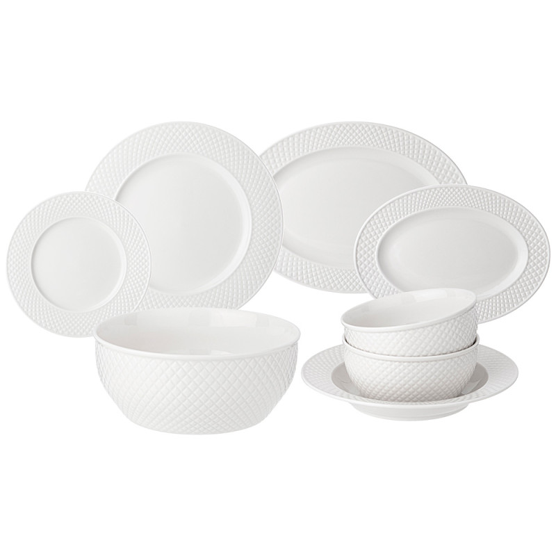 TM Lefard коллекция "Диаманд" - посуда и предметы сервировки из белого фарфора с рельефом. Изделия выполнены из упрочненного фарфора. Стильная упаковка. Идеальная сервировка праздничного и ежедневного стола. Отличный подарок! Продукция сертифицирована, безопасна для контакта с пищевыми продуктами. Можно ставить в микроволновую печь и мыть в посудомоечной машине.