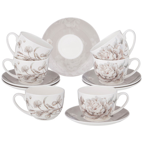 Чайный набор "WHITE FLOWER" на 6пер. 12пр. 330мл серый (кор=4наб.) LEFARD 415-2138