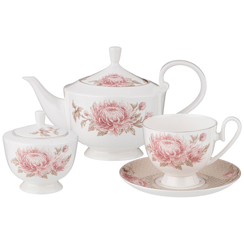 Комплектность: чайник 1200 мл - 1 шт., сахарница 320 мл - 1 шт., чашка 250 мл - 6 шт., блюдце - 6шт.