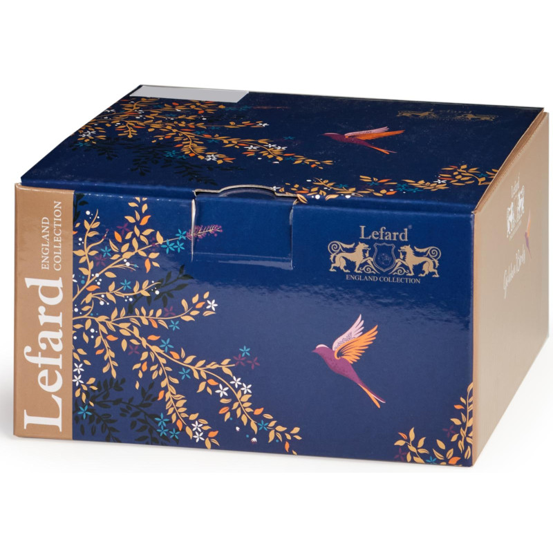 ТМ LEFARD роскошная коллекция «Golden Birds» яркой сказочной посуды из качественного фарфора. Перенесите себя в новый яркий мир, созданный для традиционного чаепития. Необычайно красивая, изящная, изысканная и утонченная посуда с изображением экзотических птиц и растений. Краски рисунка сохраняют яркость даже после длительного использования. Прекрасный подарок. Изделия упакованы в фирменную цветную коробку. Нельзя использовать в микроволновой печи. Разрешена только деликатная ручная мойка.