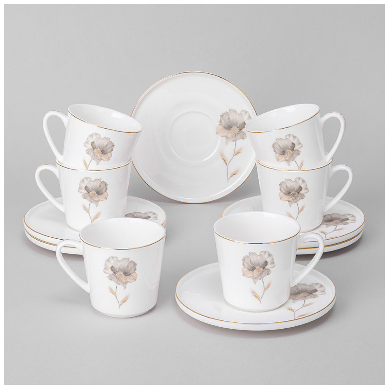 Кофейный набор "INSPIRATION" золотой цветок на 6 пер. 12 пр. 220 мл (кор=4наб.) LEFARD 422-128