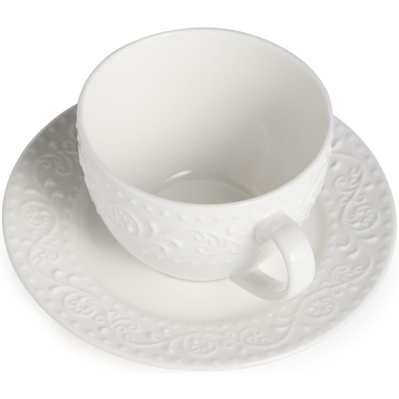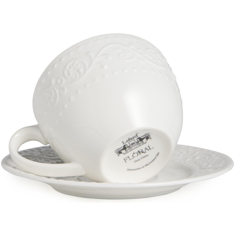 ТМ LEFARD рекомендует белую рельефную посуду коллекции FLORAL из фарфора Fine China, более простого и дешёвого нового материала, где в составе имеется искусственный минерал, который улучшает характеристики фарфора, делая его прочнее, тоньше и легче. Красивый орнамент, изящный внешний вид, удобные формы, оптимальные размеры, широкий ассортимент. Все это сделало коллекцию незаменимой на кухне. Большие глубокие овальные и круглое блюда, салатники разных размеров, тарелки, чайные пары и кружки хороши для подачи самых разнообразных блюд со всех концов света. Все товары сертифицированны и безопасны для контакта с продуктами. Изделия можно смело мыть в посудомоечной машине. Разрешено использование в микроволновой печи.