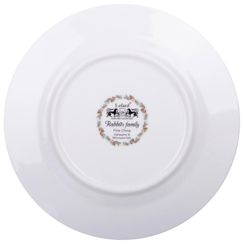 TM LEFARD эксклюзивная серия «Rabbits Family» - это очаровательный мир, где каждое изделие рассказывает добрую историю о дружном семействе кроликов. Сюжеты наполнены глубоким смыслом и учат доброте, они нравятся и взрослым, и детям. Упрочненный фарфор, оригинальный рельефный край изделий с лёгким лиственным декором, мягкая палитра цветов. Все это создает тепло и уют в доме, превращая сервировку стола в маленькое семейное приключение. Коллекция включает наборы обеденных и закусочных тарелок, салатники, кружки, кувшин, чайные пары и наборы из них. Посуда хороша для ежедневного использования. Легко накрыть веселый завтрак, плотный обед и семейный ужин. Прекрасный подарок родным и близким в красочной фирменной упаковке. Вся продукция сертифицирована и безопасна для контакта с пищевыми продуктами. Легка в уходе, не боится мытья в посудомоечной машине, использования в микроволновой печи.