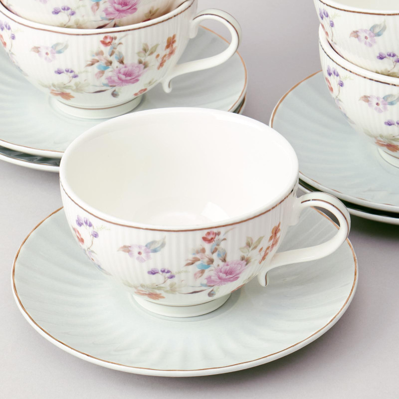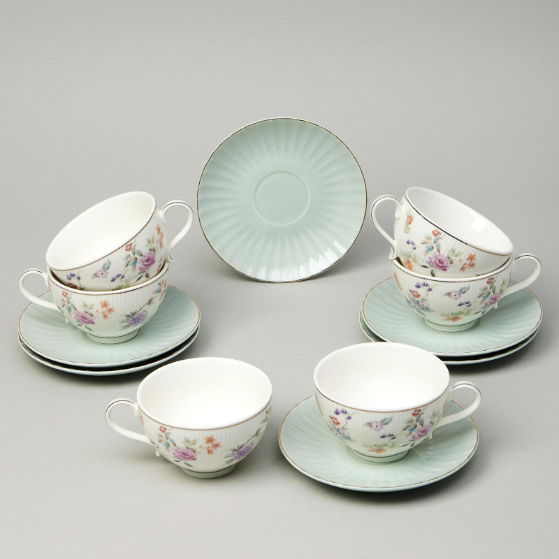 ТМ LEFARD коллекция "Времена года" выполнена из тонкостенного фарфора. Стильная форма, вместительный объем, модное сочетание пастельных тонов и цветочной деколи, отделка золотом - все это делает коллекцию неотразимой и очень привлекательной. Форма и цвет посуды способны оказать магическое действие на всех, кто находится за столом. «Времена года» могут согреть душу, создать тепло и уют в доме. Это прекрасный подарок. Продукция прошла сертификацию и безопасна для контакта с пищевыми продуктами. Можно ставить в микроволновую печь, не рекомендуется мыть в посудомоечной машине. Комплектность: 6 чашек 250 мл., 6 блюдец 15*7 см.