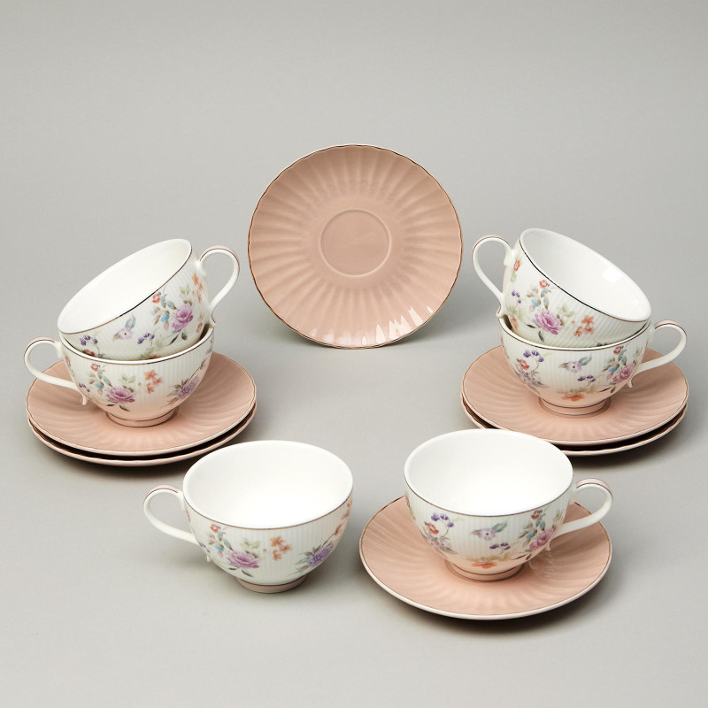Чайный набор "ВРЕМЕНА ГОДА" на 6 пер. 12 пр. 250 мл розовый LEFARD 42-573