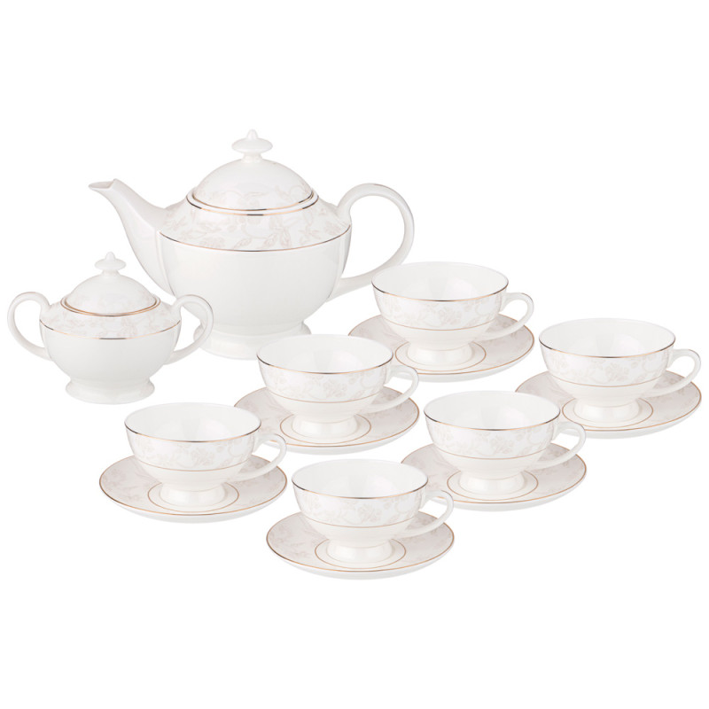 Комплектность: чайник 1200 мл, сахарница 300 мл, чашка 250 мл 6 шт., блюдце 6 шт.