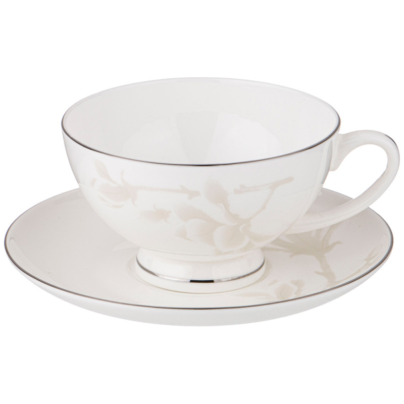 ТМ LEFARD коллекции столовой посуды из костяного фарфора. "Медиссон" не оставит равнодушным и украсит любой праздничный стол. Ваш стол стильный и элегантный, сверкающий белый с серебристой магнолией и тонкой золотой окантовкой. 45 % костяной золы сделало изделия тонкими, прочными, прозрачными, мягкого молочного цвета. Изготовление изделий из костяного фарфора не поддаётся автоматизации, производство таких вещей возможно только с использованием ручного труда. Не рекомендуется использовать в микроволной печи, посудомоечной машине.
