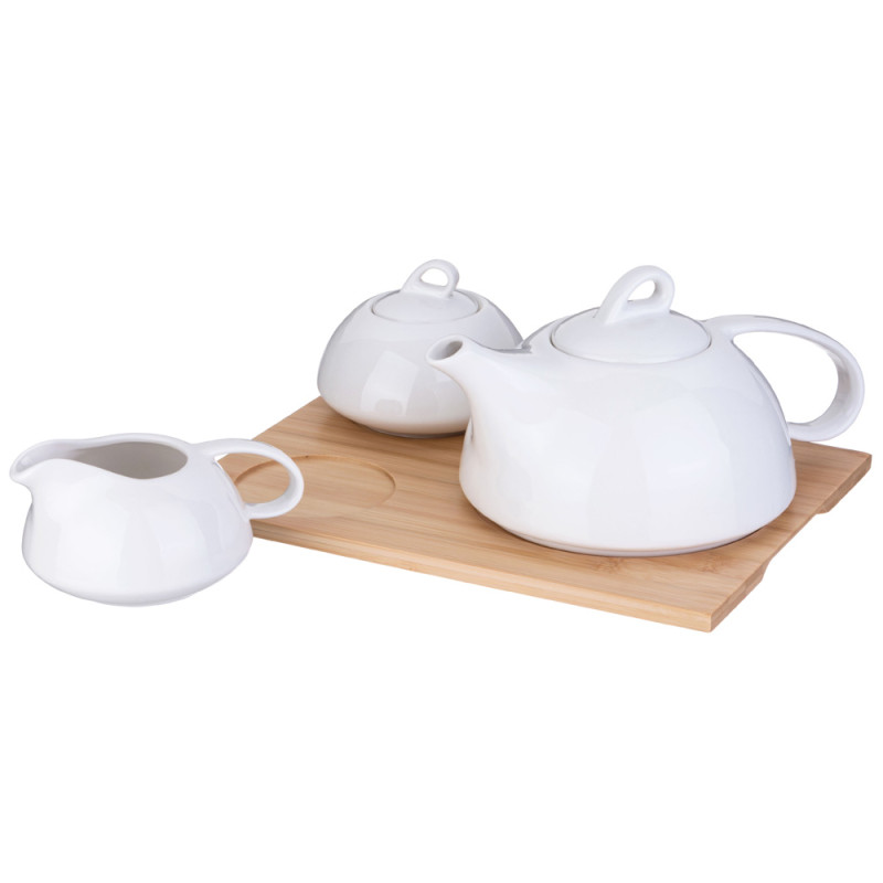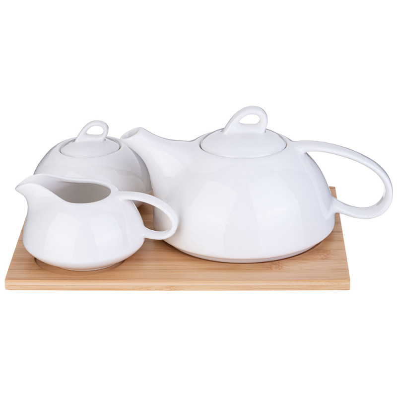 Набор для чая "NATIVE" 3 пр.: чайник, сахарница, молочник на дерев. подставке (кор=6наб.) LEFARD 587-197