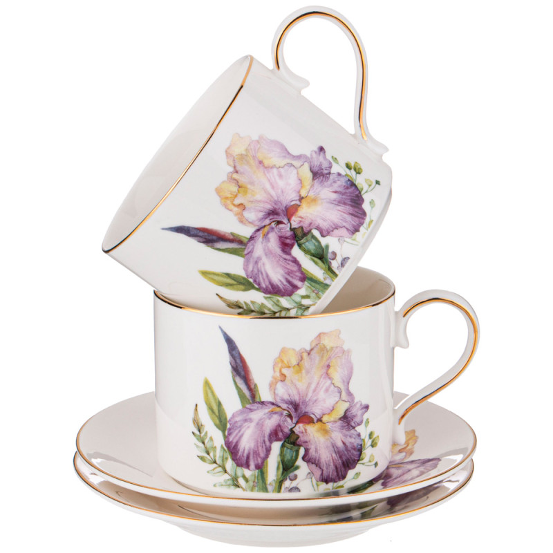TM Lefard коллекция "Ирис" - это эксклюзивная коллекция нежных ирисов на модных формах с золотой окантовкой. Первый цветок ириса появился где-то в юго-восточной Азии в древние времена. Ирис был так красив, что им любовались и звери, и птицы, и воды, и ветры. Они разнесли семена этого необычного цветка по всему миру. И теперь благодаря им мы любуемся разнообразием этих красивых цветов. Качественный тонкостенный фарфор, "живые" натуральные цвета декора, красочная упаковка делают предметы коллекции прекрасным подарком к любому случаю. Продукция сертифицирована. Безопасна для контакта с пищевыми продуктами. Нельзя ставить в микроволновую печь, не рекомендуется мыть в посудомоечной машине. Комплектность: чашка 300 мл 6 шт., блюдце 14, 2 см 6 шт.