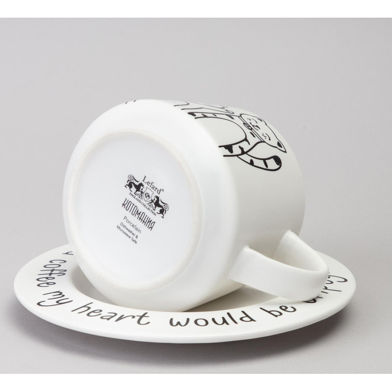 TM Lefard коллекция "КОТЫ" - отличный функциональный подарок в любой дом или офис всем любителям и ценителям чая, кофе и любимых питомцев из отряда Кошачьих. Чайная пара из качественного фарфора. Посуда прошла сертификацию. Безопасна для контакта с пищевыми продуктами. Не рекомендуется мыть в посудомоечной машине и разогревать напитки в микроволновых печах.