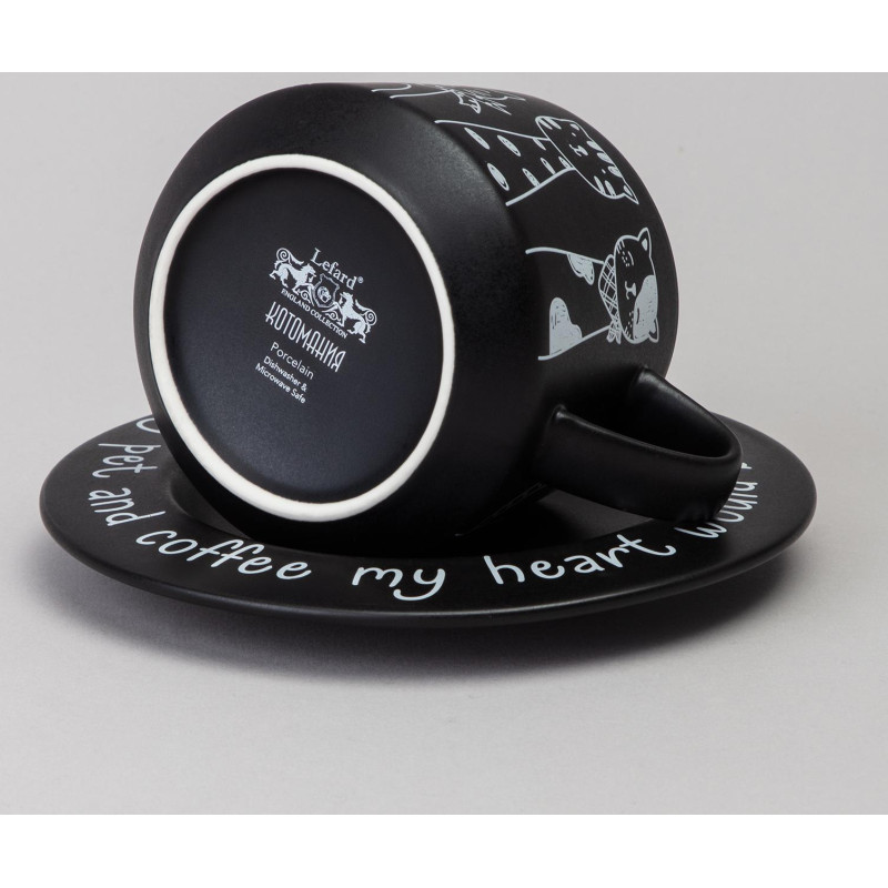 TM Lefard коллекция "КОТЫ" - отличный функциональный подарок в любой дом или офис всем любителям и ценителям чая, кофе и любимых питомцев из отряда Кошачьих. Чайная пара из качественного фарфора. Посуда прошла сертификацию. Безопасна для контакта с пищевыми продуктами. Не рекомендуется мыть в посудомоечной машине и разогревать напитки в микроволновых печах.