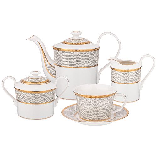 Комплектност: чайник 1250 мл - 1 шт., сахарница 400 мл - 1шт., молочник 350 мл - 1шт., чашка 250 мл - 6 шт., блюдце - 6 шт.