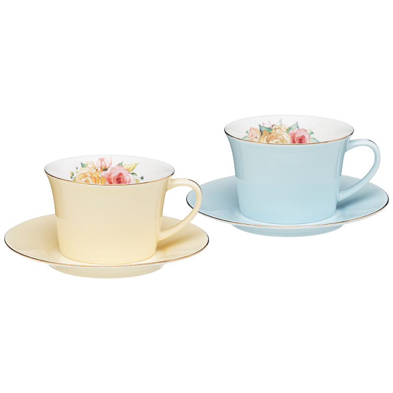 Чайный набор "ВРЕМЕНА ГОДА" 4 пр. на 2 пер. 250 мл голубой-желтый (кор=24наб.) LEFARD 760-684
