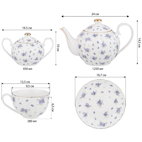 Чайный сервиз "SONNET IN BLUE" на 6 пер. 14 пр. 1200/400/280 мл (кор=4наб.) LEFARD 760-763