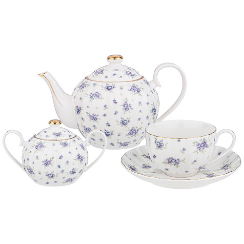 ТМ LEFARD коллекция "Sonnet in Blue" выполнена из тонкостенного упрочненного фарфора. Стильная форма, вместительный объем, модная синяя цветовая гамма, нежные цветочные букетики, отделка золотом - все это делает коллекцию неотразимой и очень привлекательной. Форма и цвет посуды способны оказать магическое действие на всех, кто находится за столом. В произведениях искусства синий — это цвет ночи и тени, а значит, идеальный цвет для тайны. Это прекрасный подарок, символизирует спокойствие и безмятежность. Нельзя ставить в микроволновую печь, не рекомендуется мыть в посудомоечной машине. Комплектность: чайник 1200 мл - 1 шт., сахарница 400 мл - 1 шт., чашка 280 мл - 6 шт., блюдце 17 см - 6 шт.