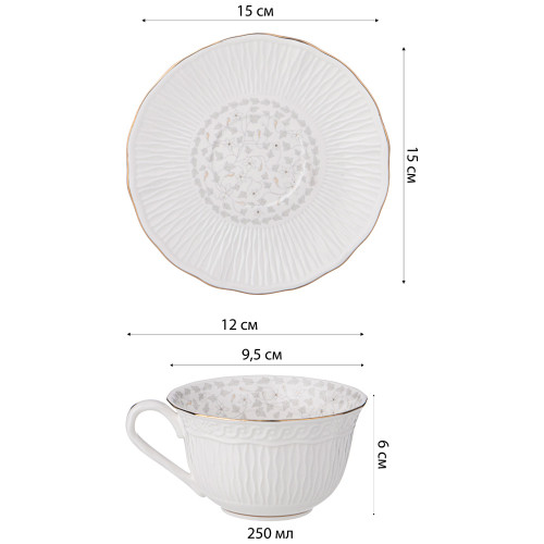Комплектность: чашка 250 мл - 2 шт., блюдце - 6 шт.