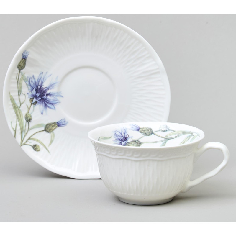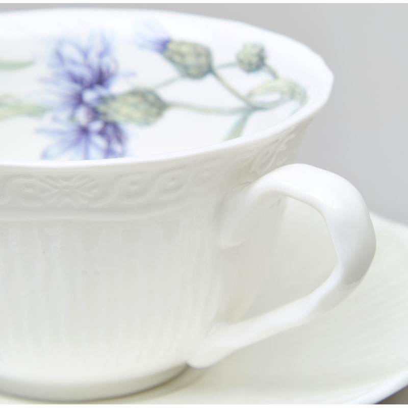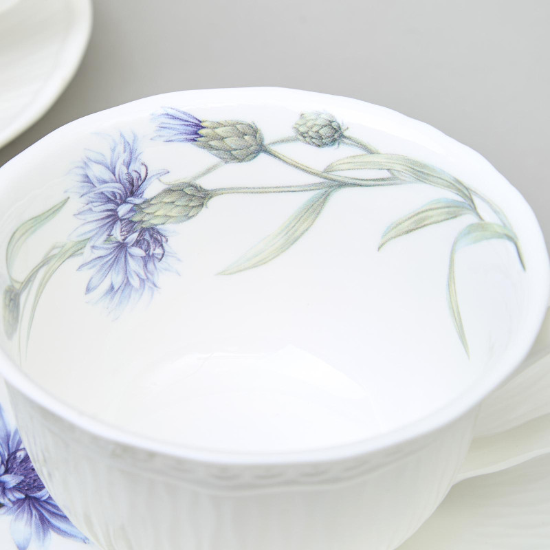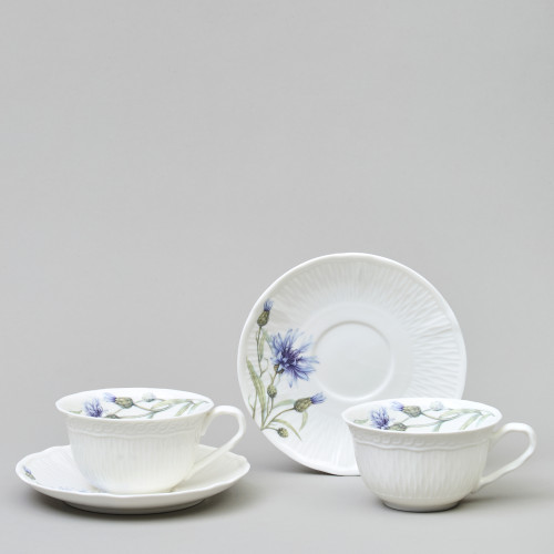 «Васильки» ТМ LEFARD - уникальная коллекция лёгкого, тонкого, прозрачного и прочного фарфора. Изящная рельефная сетка с красивым кантом, сверкающая глазурь. Эксклюзивный дизайн полевого василька небесного цвета, создающего романтическое настроение. Оригинальное размещение дизайна на рельефной части изделий, что создает дополнительную игру рисунка и объем. Широкий ассортимент позволяет сервировать обеденный стол, вечернее чаепитие – идеальный вариант для всех случаев сервировки. Коллекция представлена чайным сервизом, чайными парами удобных объемов, десертными тарелками. Стильная цветная коробка, прекрасный подарок. Все изделия прошли сертификацию. Безопасны для контакта с пищевыми продуктами. Можно смело использовать в микроволновой печи и мыть в посудомоечной машине.