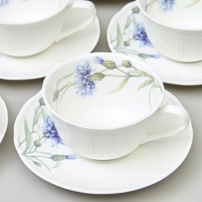 «Васильки» ТМ LEFARD - уникальная коллекция лёгкого, тонкого, прозрачного и прочного фарфора. Изящная рельефная сетка с красивым кантом, сверкающая глазурь. Эксклюзивный дизайн полевого василька небесного цвета, создающего романтическое настроение. Оригинальное размещение дизайна на рельефной части изделий, что создает дополнительную игру рисунка и объем. Широкий ассортимент позволяет сервировать обеденный стол, вечернее чаепитие – идеальный вариант для всех случаев сервировки. Коллекция представлена чайным сервизом, чайными парами удобных объемов, десертными тарелками. Стильная цветная коробка, прекрасный подарок. Все изделия прошли сертификацию. Безопасны для контакта с пищевыми продуктами. Можно смело использовать в микроволновой печи и мыть в посудомоечной машине.