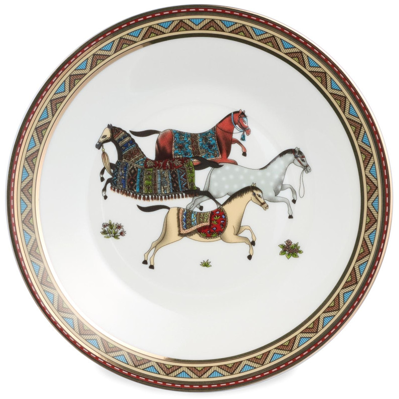 ТМ Lefard коллекция Passage мужественная и стильная. Движения лошадей эластичные, элегантные с активным импульсом. Каждая диагональная пара ног поднимается и ставится в очень точном ритме и с подвисанием. Шея лошади приподнята и округлена, затылок находится в высшей точке, голова опущена почти вертикально. Этот ритм завораживает. Посуда для сервировки стола из тонкостенного упрочненного фарфора неповторима. Прямые формы. Декор с богатым орнаментом и золотой окантовкой. Посуда прошла сертификацию. Безопасна для контакта с пищевыми продуктами. Отличный подарок. Не использовать в микроволновой печи, не рекомендуется мыть в посудомоечной машине.