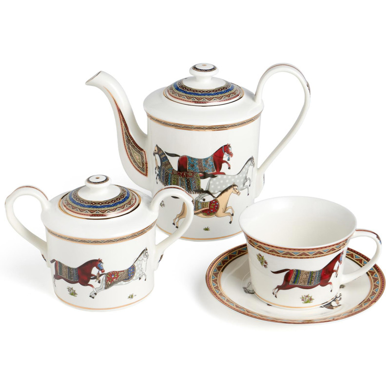 Комплектация: чайник 850 мл - 1 шт., сахарница 400 мл - 1 шт., чашка 250 мл - шт., блюдце - 6 шт.