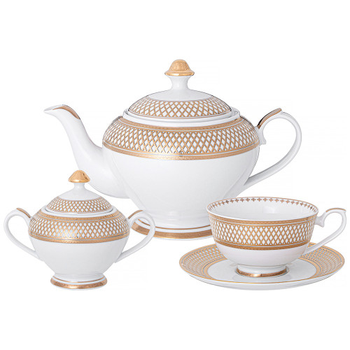 Чайный сервиз "ЗОЛОТАЯ СЕТКА" hа 6 пер. 14 пр. 1300/250/270 мл (кор=1наб.) LEFARD 770-230