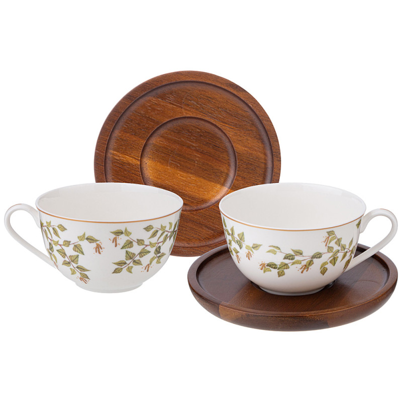 Чайный набор " БЕРЕЗКИ" на 2 пер. 4 пр. 300 мл на дерев. блюдце (кор=12наб.) LEFARD 85-2019