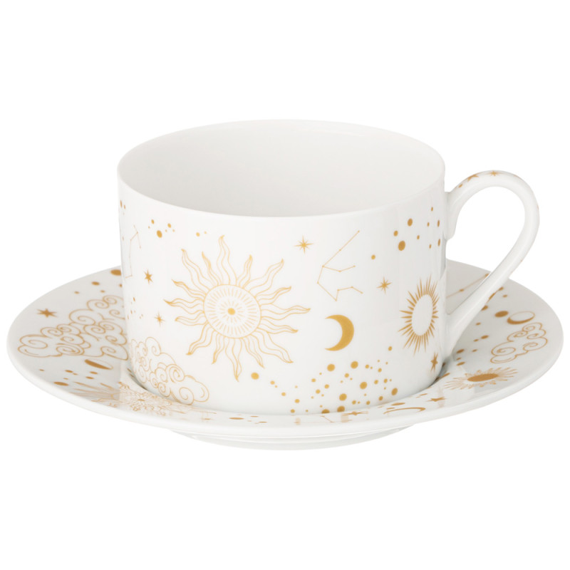 TM LEFARD представляет элегантную коллекцию “Astronomy” из белоснежного упрочненного фарфора. Изящное изображение солнца, мерцающие звезды, созвездия и облака создают атмосферу тепла и уюта, превращая обычное чаепитие в момент вдохновения. Коллекция представлена чайными и кофейными парами, кружками, чайником и сахарницей, блюдом для сладкого. Красочная упаковка, прекрасный подарок для мечтателей и романтиков, любящих все необычное и прекрасное. Посуда прошла сертификацию и подходит для контакта с пищевыми продуктами, легко моется в посудомоечной машине и может использоваться в микроволновой печи.