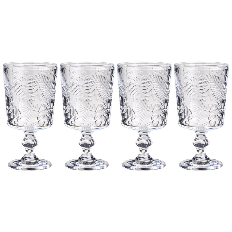 Погрузитесь в атмосферу утонченного стиля с этим элегантным набором из четырёх бокалов объёмом 350 мл. Изготовленные из высококачественного экологически чистого стекла без содержания свинца, бокалы украшают изящные узоры с листьями, создающие ощущение свежести и природной красоты.