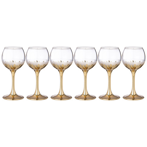 Этот изысканный набор рюмок создан, чтобы превратить каждый момент в настоящий праздник. Каждая рюмка украшена золотым декором и нежным белым узором, который придаёт ей неповторимый блеск и шик.