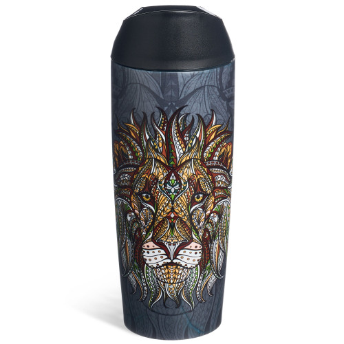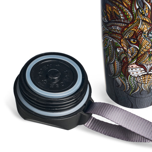Термокружка " ЛЕВ" с кнопкой-стоппером, 360мл колба нерж.сталь 18/10 AGNESS 709-086