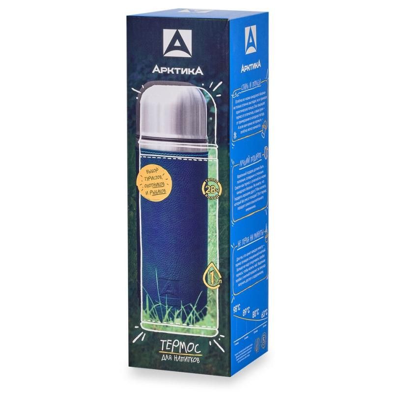 108-1000-BL Термос питьевой 'Арктика' 1.0л (в кожаной оплетке) синий