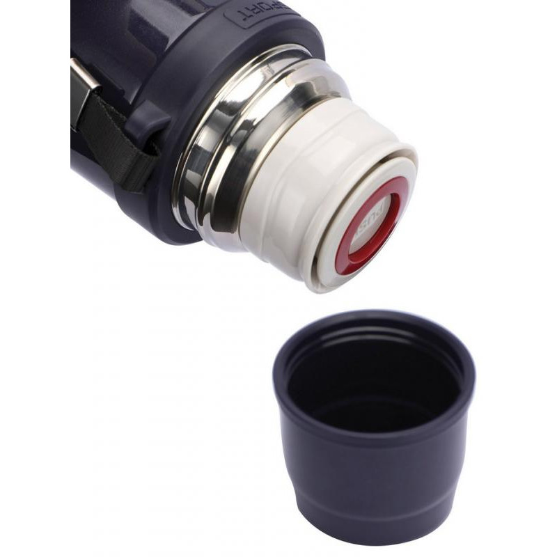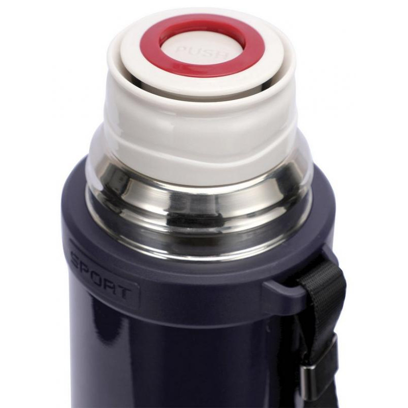 0.9л, сталь, глянцевое покрытие, высота 32.5см, кнопка-клапан для налива, крышка-стаканчик, ремешок для переноски