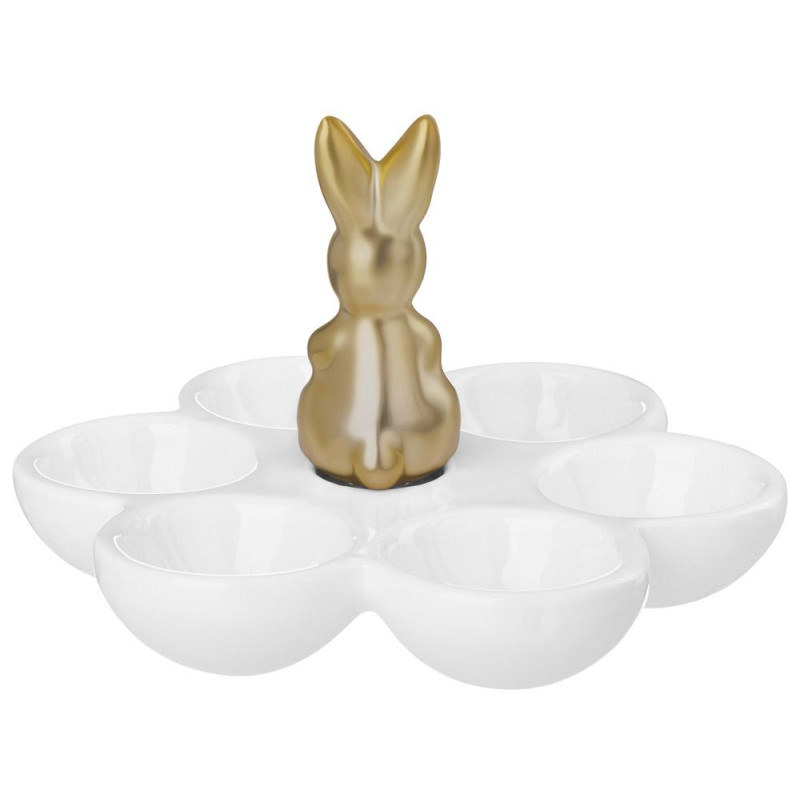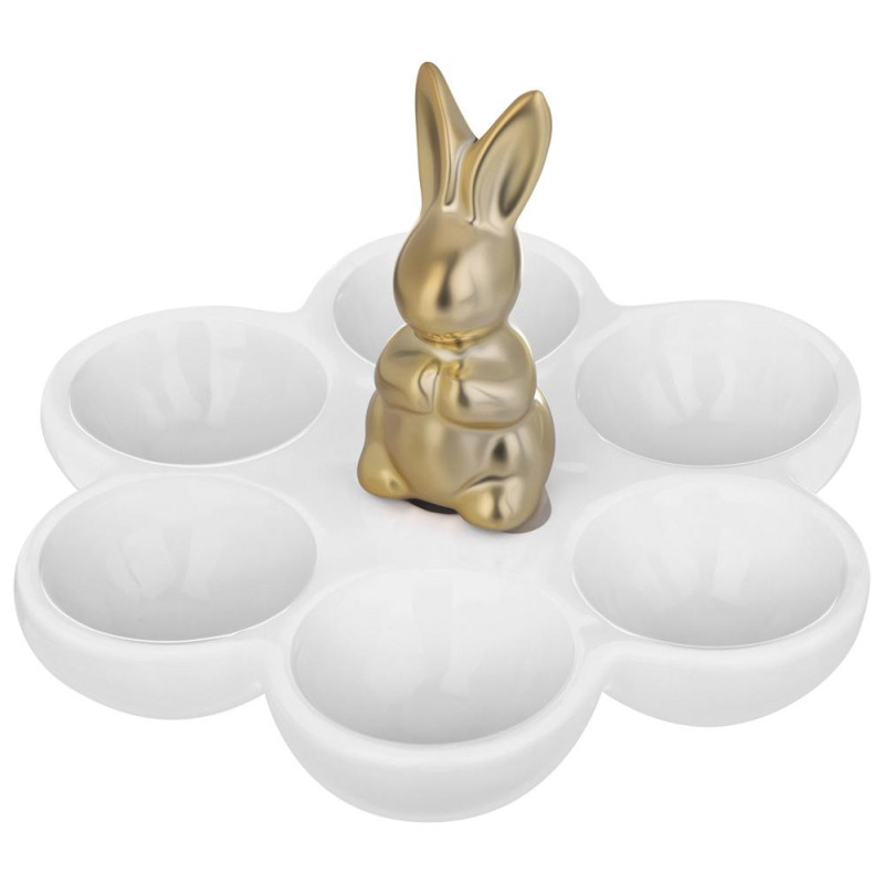 Мягкие переходы от светло-желтого к нежно-зеленому, акценты розового — палитра коллекции вдохновлена первыми весенними ростками и солнечным светом. Фигурки милых кроликов с изящными бантами, элегантные подставки для яиц и изысканные сервировочные блюда превратят ваш праздничный стол в произведение искусства.
