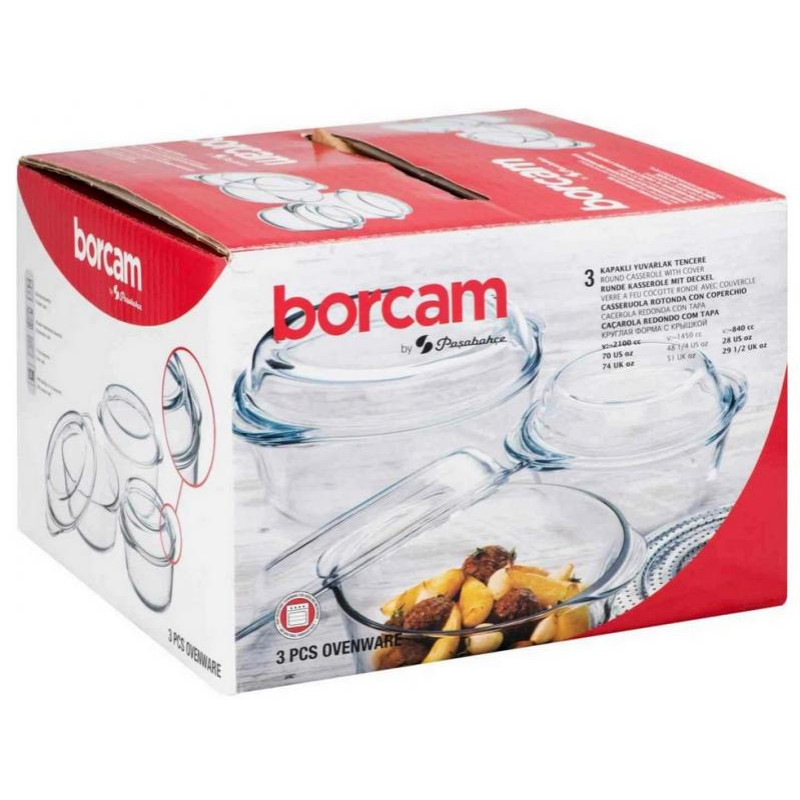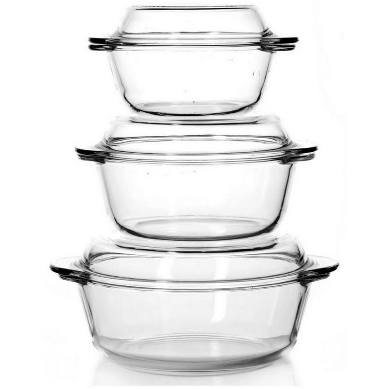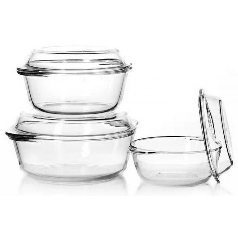 стекло, 3шт, кастрюли с крышками, 1л/1.5л/2л,