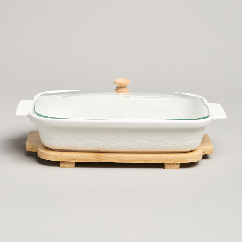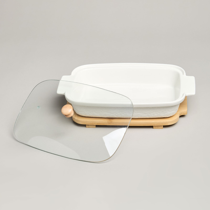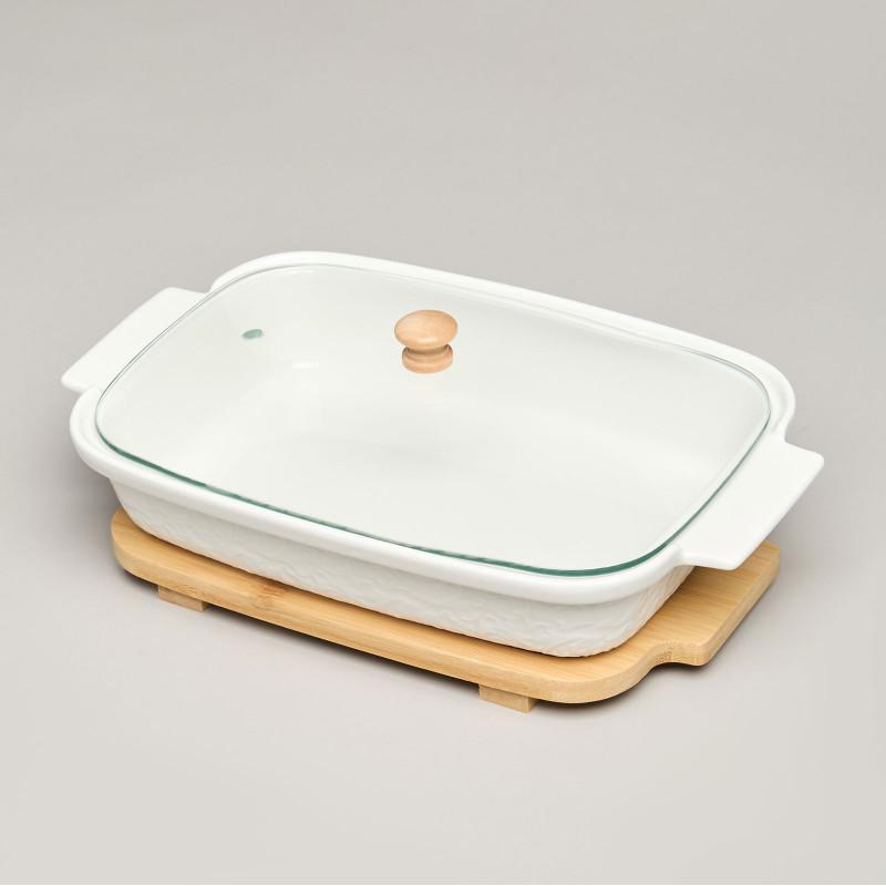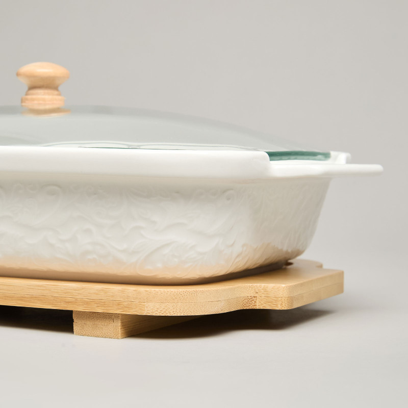 Блюдо для выпекания и сервировки "MUSE" со стекл.крышкой на дер.подставке 27,5*17*9см 900мл LEFARD 587-242