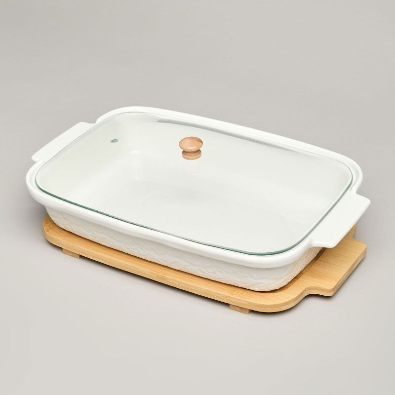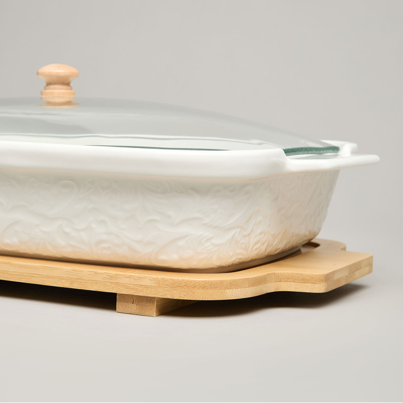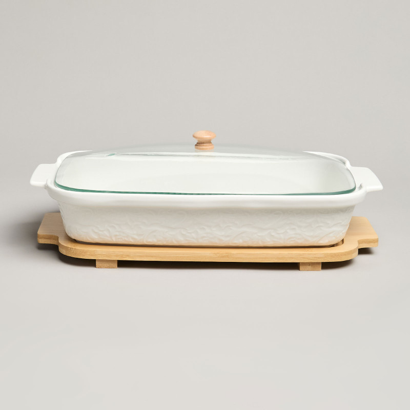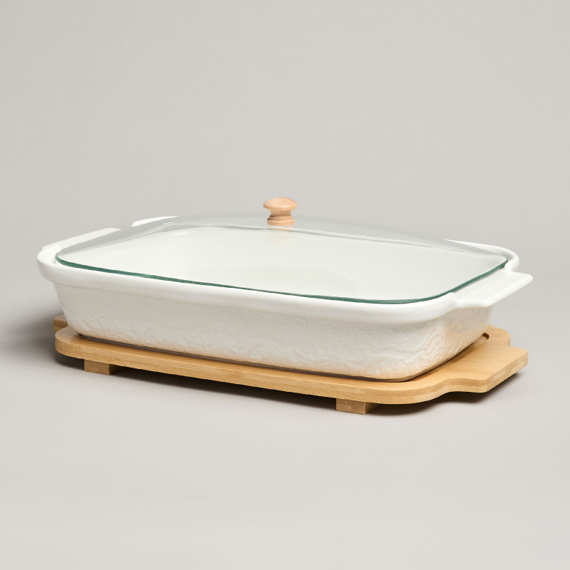 Блюдо для выпекания и сервировки "MUSE" со стекл.крышкой на дер.подставке 34,5*21*11см 1400мл LEFARD 587-243