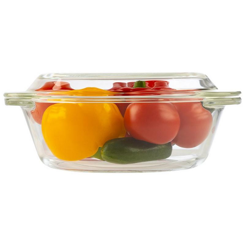 1.5л, жаропрочное стекло, можно исп-ть в дух.шкафу, свч, морозильной камере, можно мыть в пмм