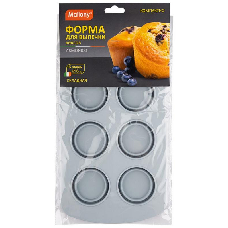 108093 Форма для выпечки 6 кексов складная Mallony ARMONICO (силикон)