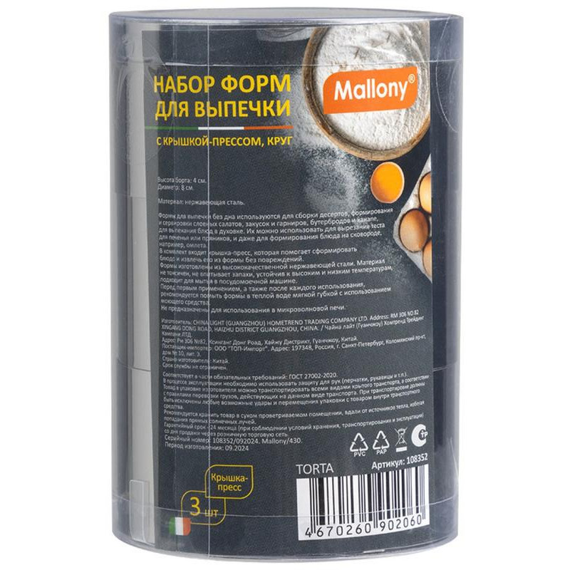 108352 Набор форм для выпечки Mallony TORTA круг (3шт)