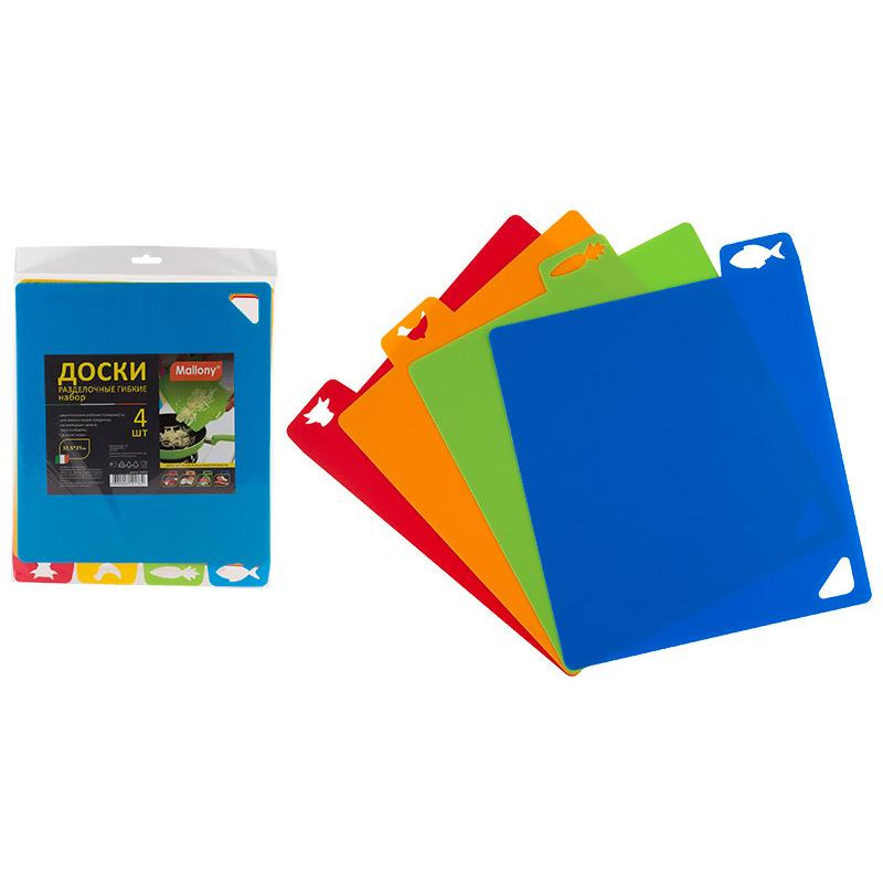 4шт, 32.5*27см, пластик, двухсторон. пов-ть, не тупит ножи, не впитывает запах, легко сгибается