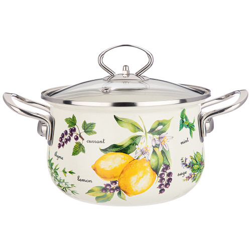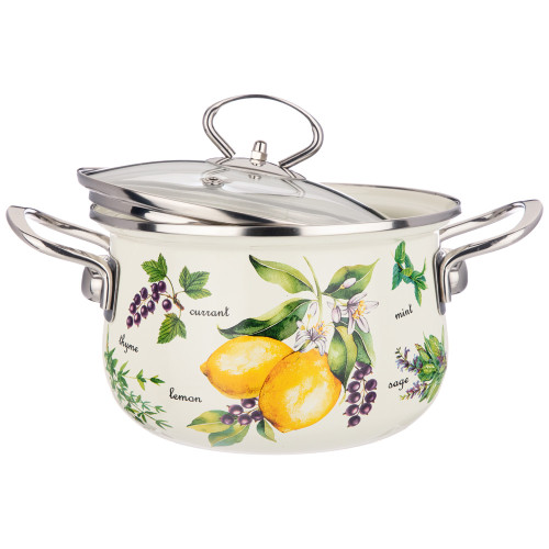 Кастрюля эмалированная со стеклянной крышкой серия "СЕКРЕТНЫЕ ИНГРЕДИЕНТЫ" 2.0 л, 18*11 см AGNESS 915-126