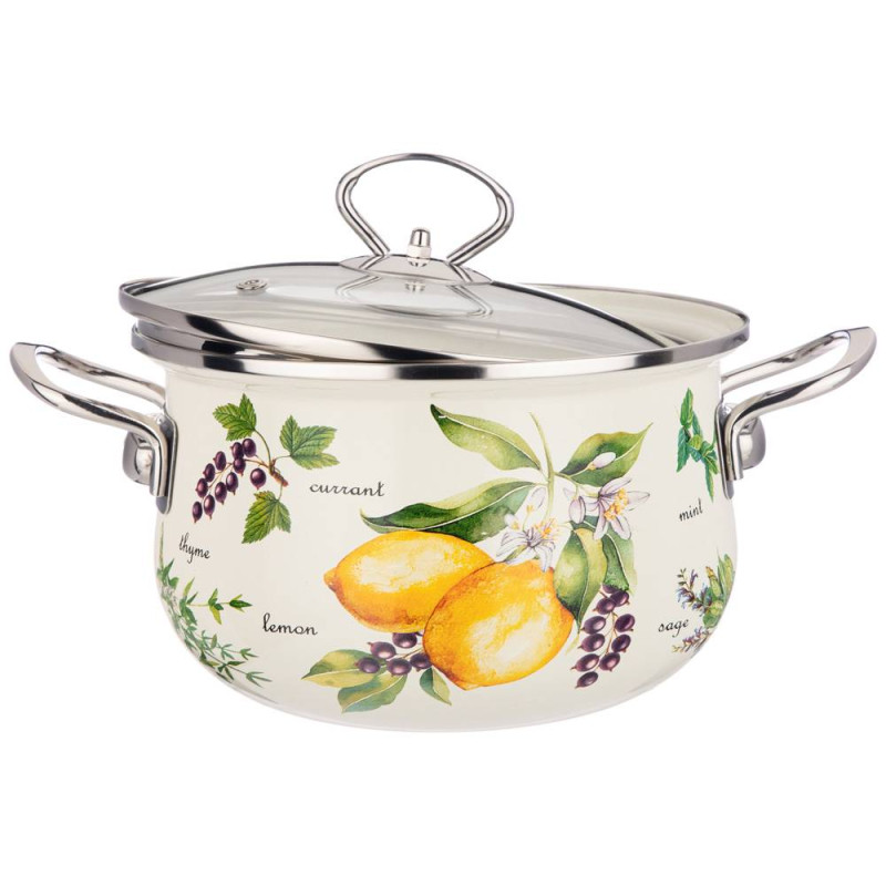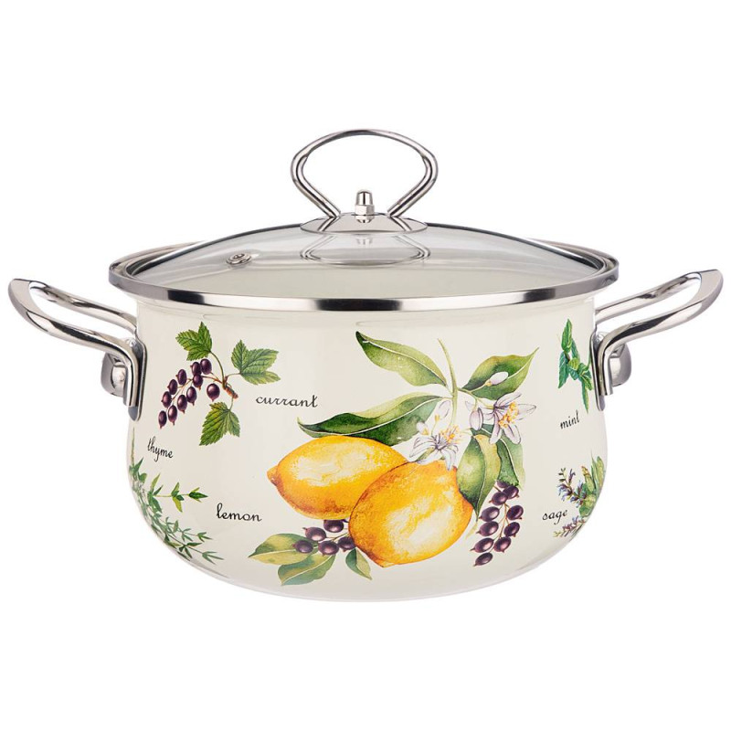 Кастрюля эмалированная со стеклянной крышкой серия "СЕКРЕТНЫЕ ИНГРЕДИЕНТЫ" 2.8 л, 20*12 см AGNESS 915-127