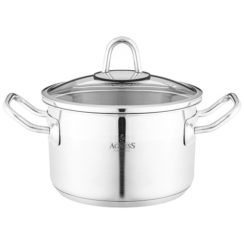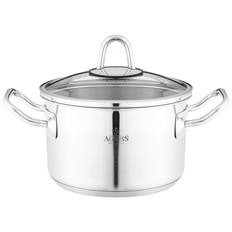 Кастрюля 16x10 см 1, 8 л высококачественная нерж сталь 18/10 со стекл.крышкой AGNESS 916-450