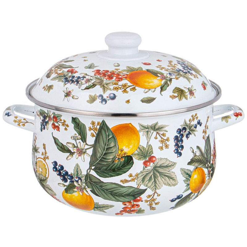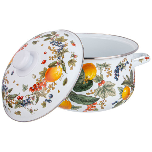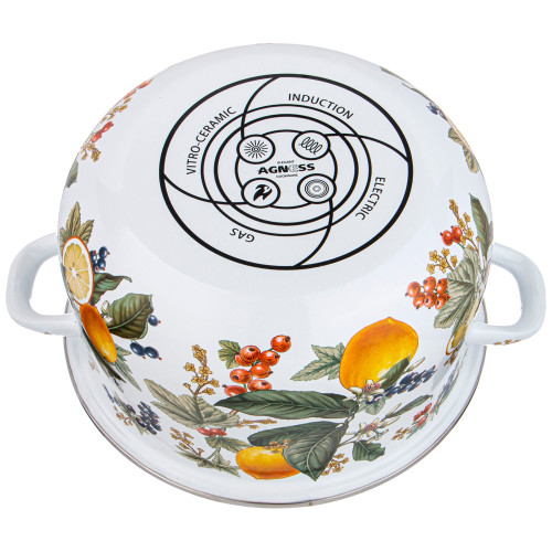 Кастрюля эмалированная с эмал.крышкой серия "ФРУКТОВАЯ КОРЗИНА", 5.0 л, 24*14 см AGNESS 934-584